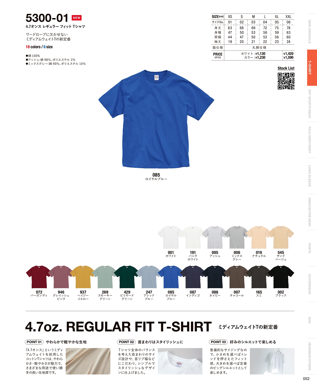 4.7オンスレギュラーフィットTシャツ 5300-01W