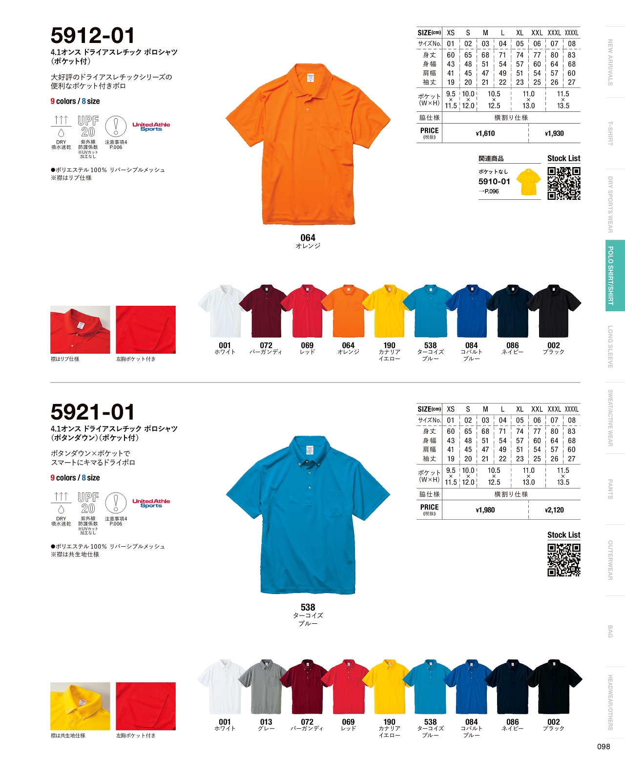 4.1オンスドライアスレチックポロシャツ 5912-01