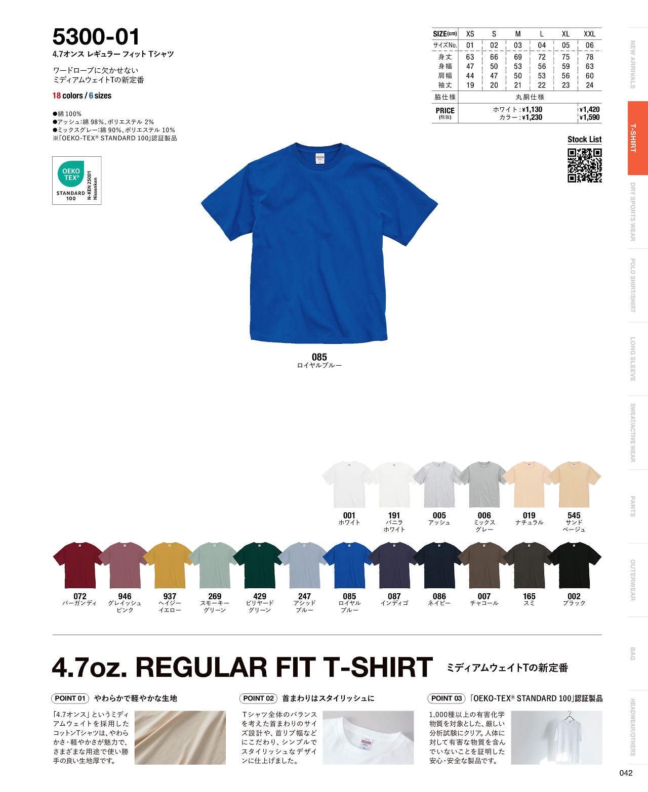 4.7オンスレギュラーフィットTシャツ 5300-01W