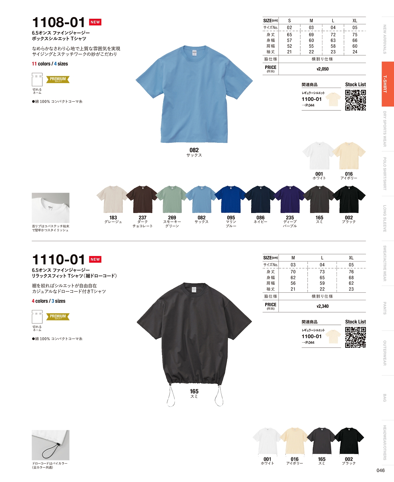 6.5オンスファインジャージーボックスシルエットTシャツ 1108-01