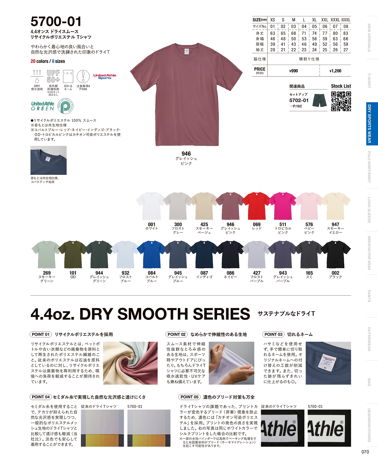 4.4オンスドライスムースリサイクルポリエステルTシャツ 5700-01