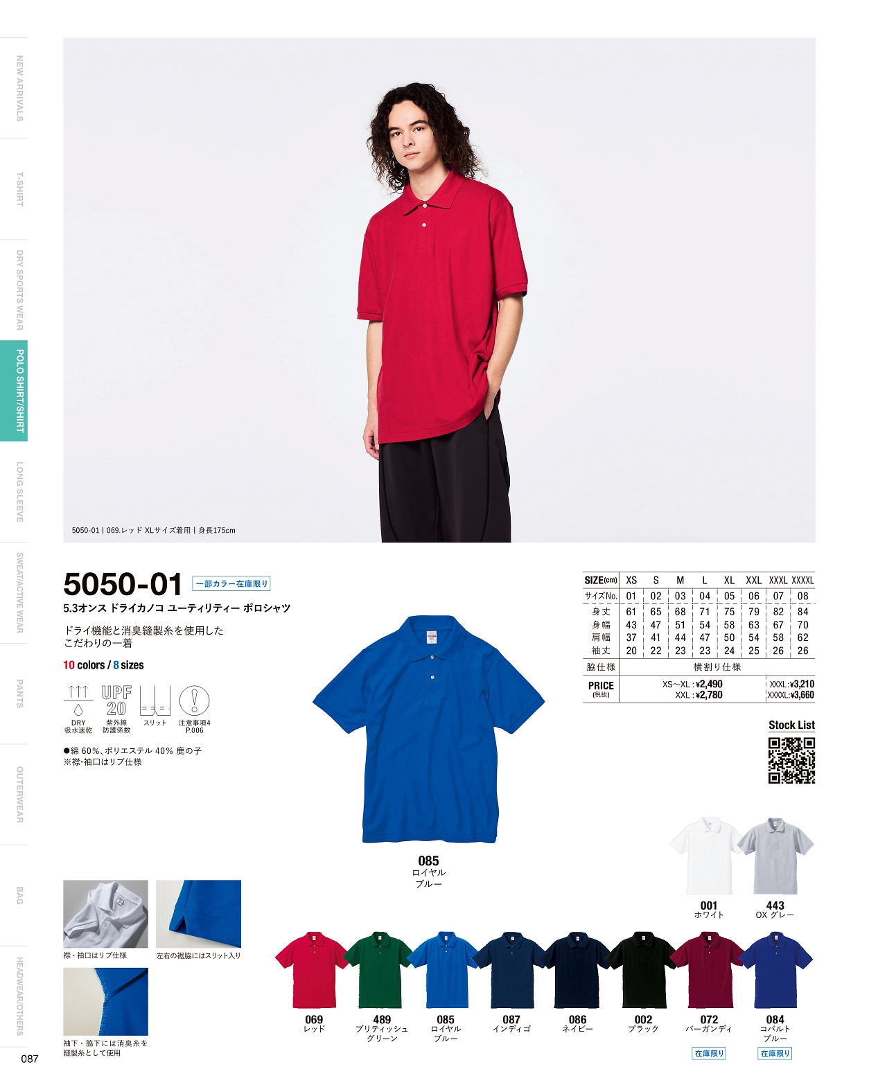 5.3オンスドライカノコユーティリティーポロシャツ 5050-01