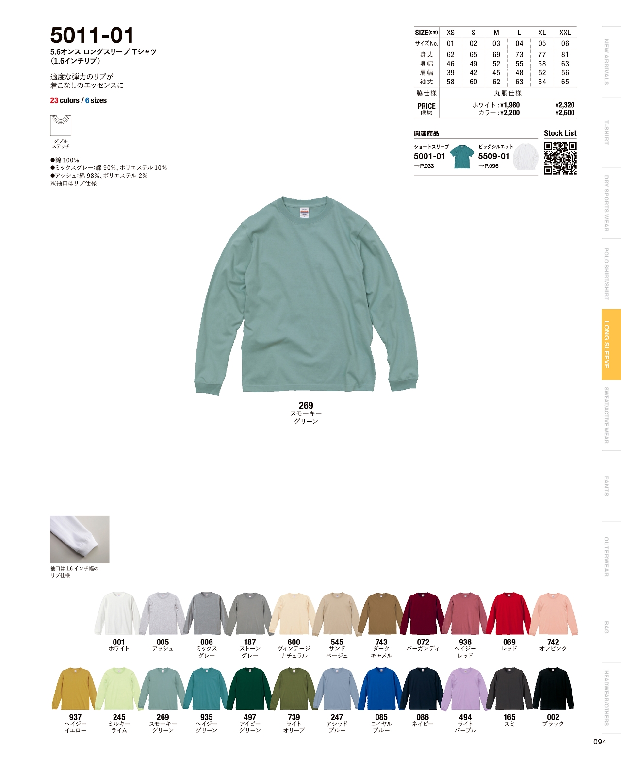 5.6オンスロングスリーブTシャツ 5011-01W