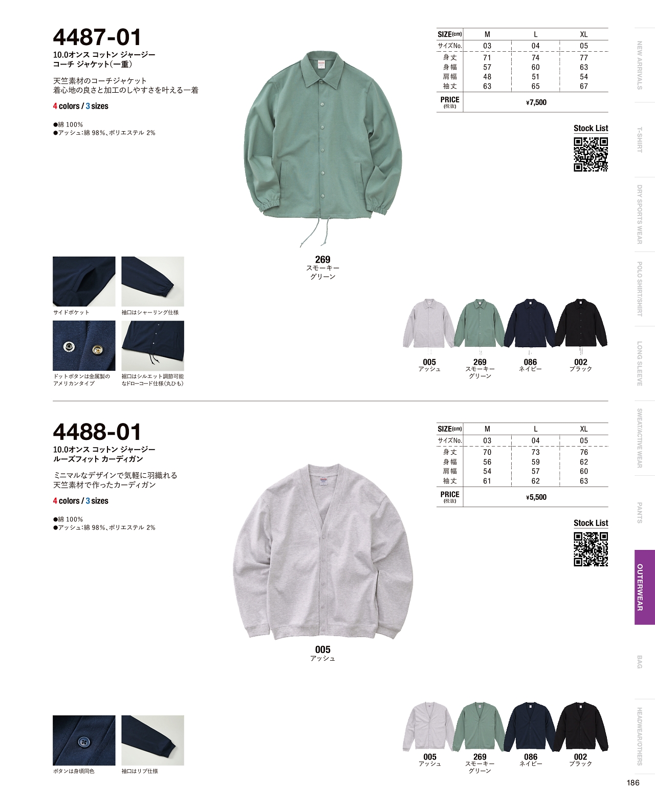 10.0オンスコットンジャージールーズフィットカーディガン 4488-01