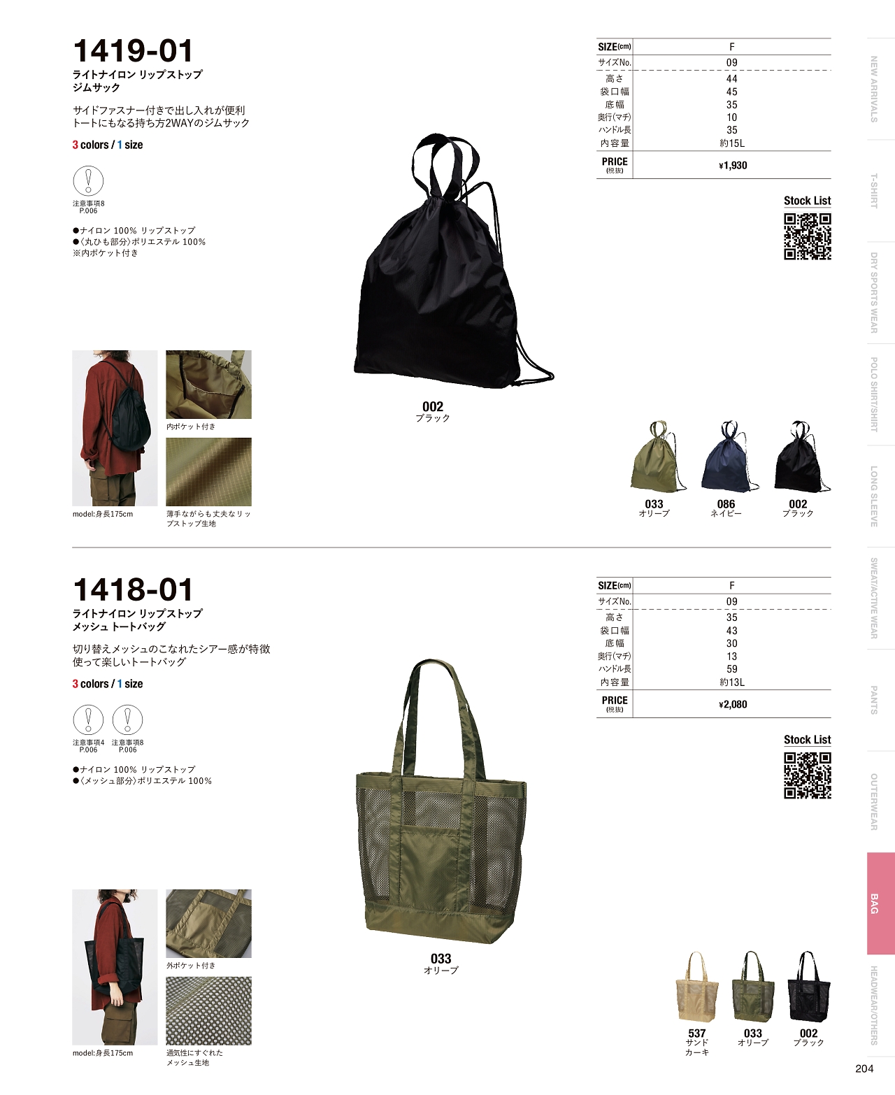 ライトナイロンリップストップメッシュトートバッグ 1418-01