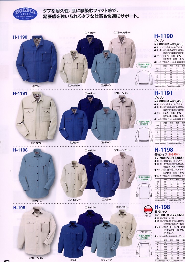 エコストレッチ長袖シャツ H198