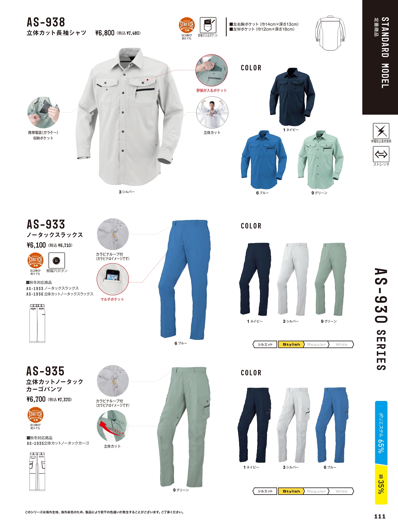 ノータックカーゴパンツ AS935