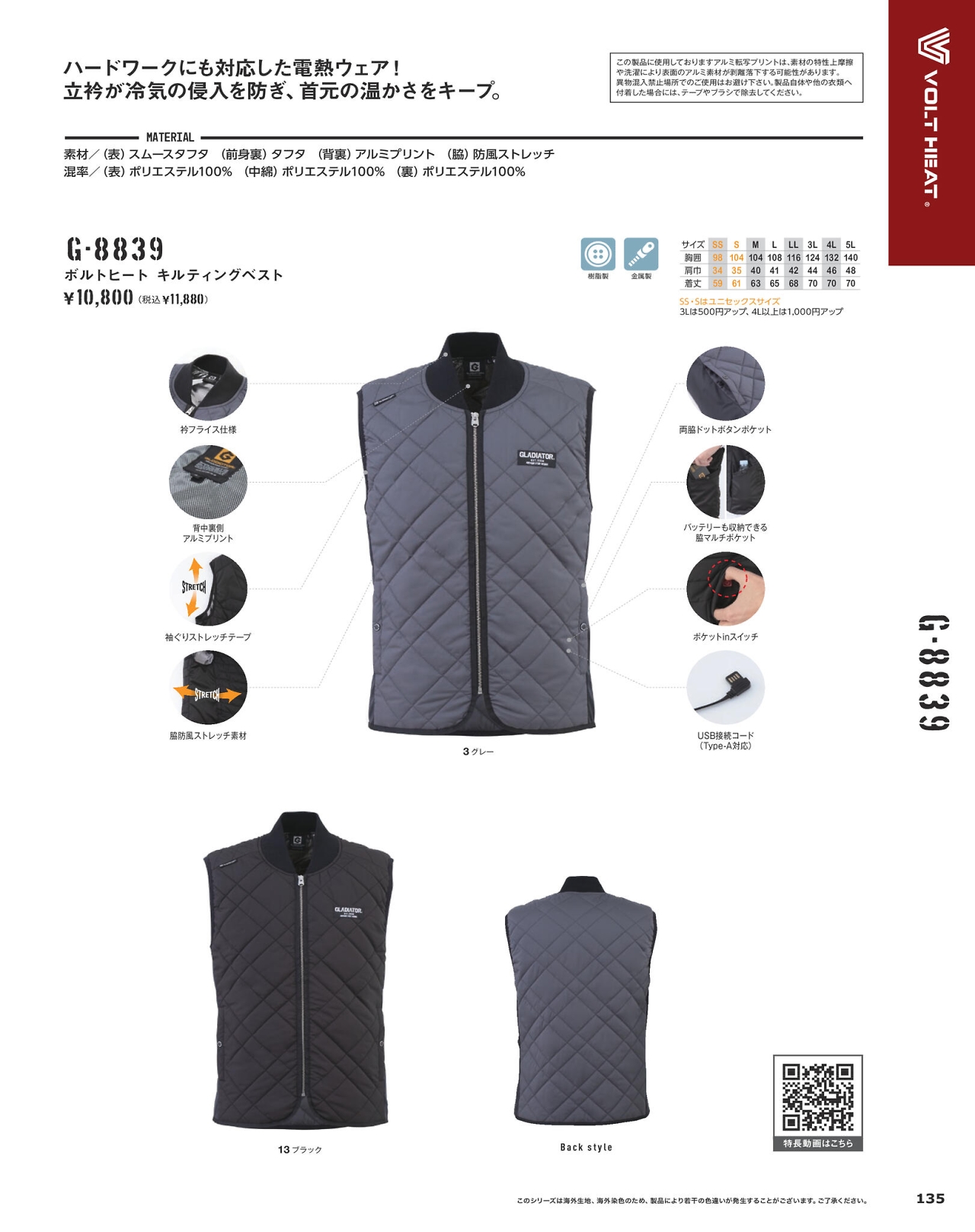ボルトヒートキルティングベスト G8839