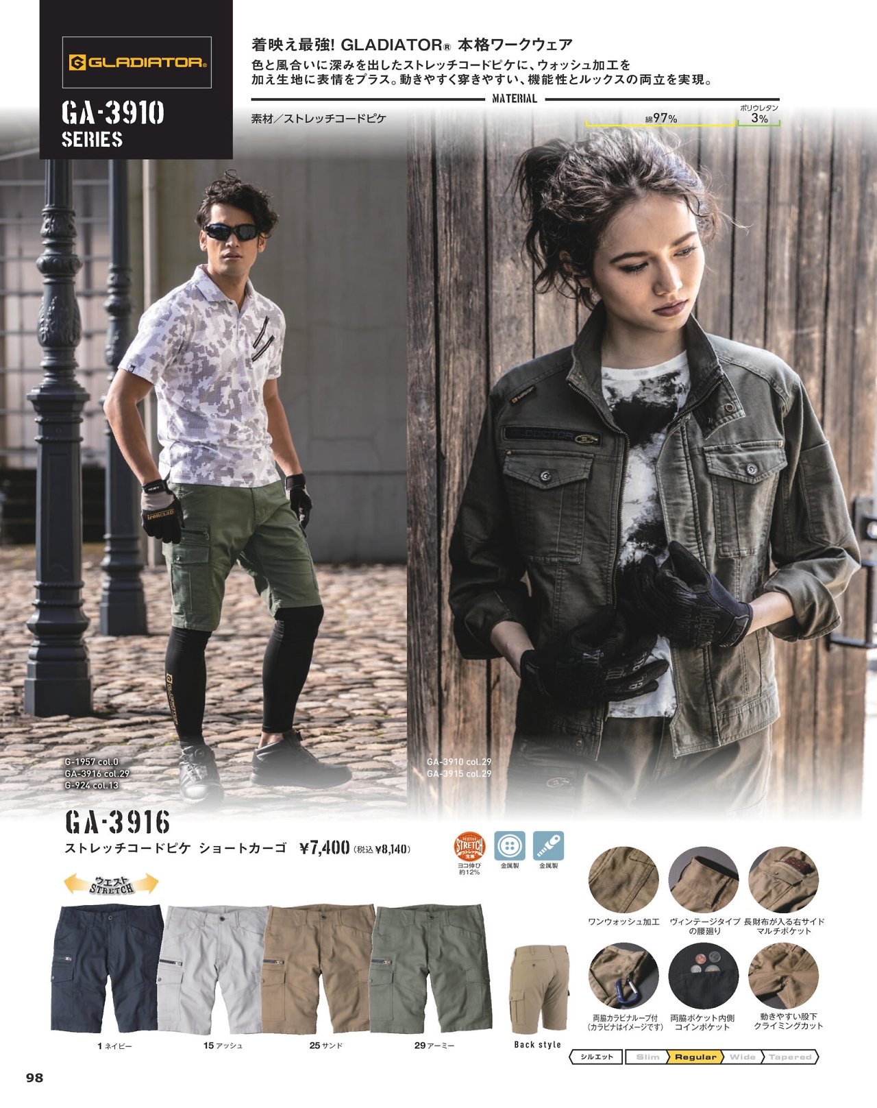 ストレッチコードピケショートカーゴ GA3916