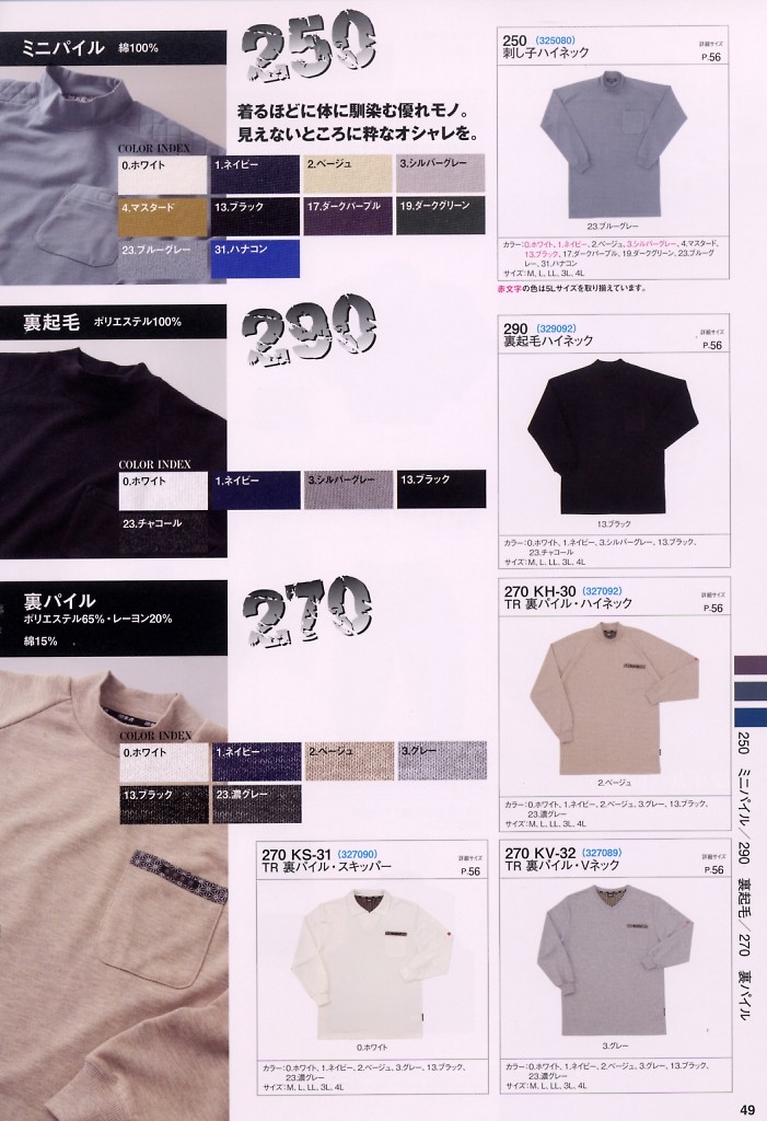 TR裏パイルハイネック 270KH30