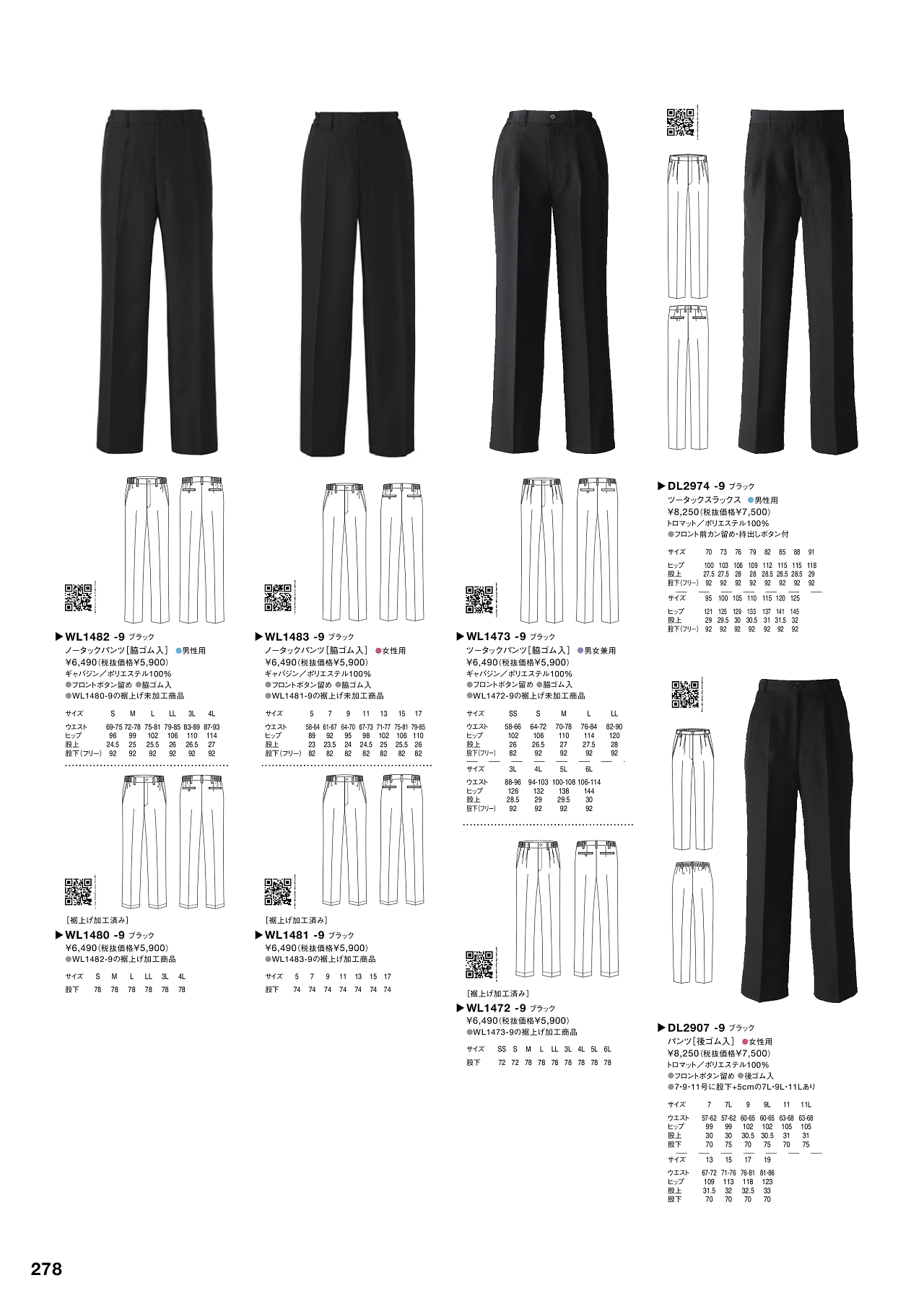 ノータック脇ゴムパンツ WL1480