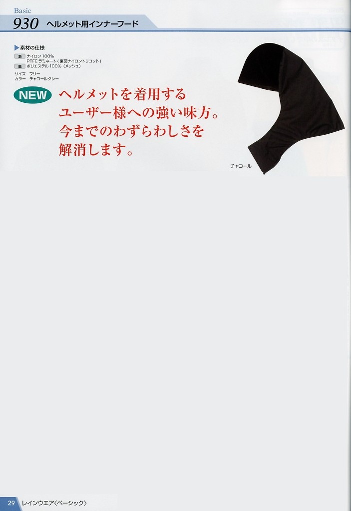 ヘルメット用インナーフード