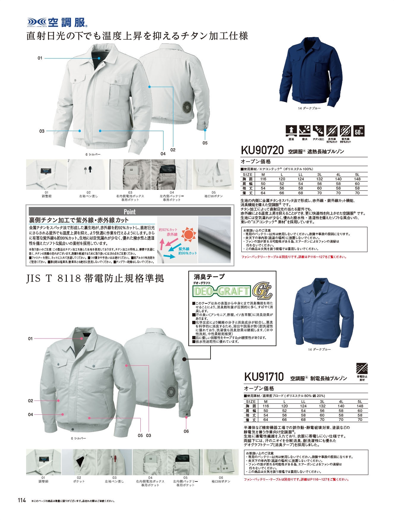 綿・ポリ混紡制電長袖空調服 KU91710