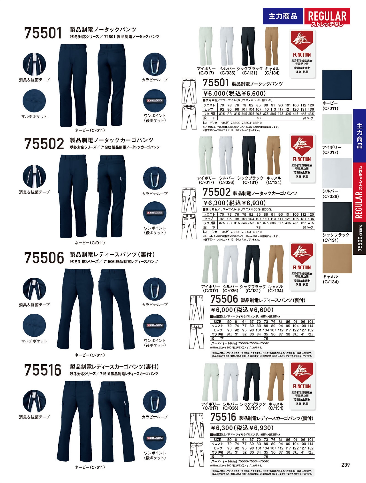 製品制電ノータックカーゴパンツ 75502