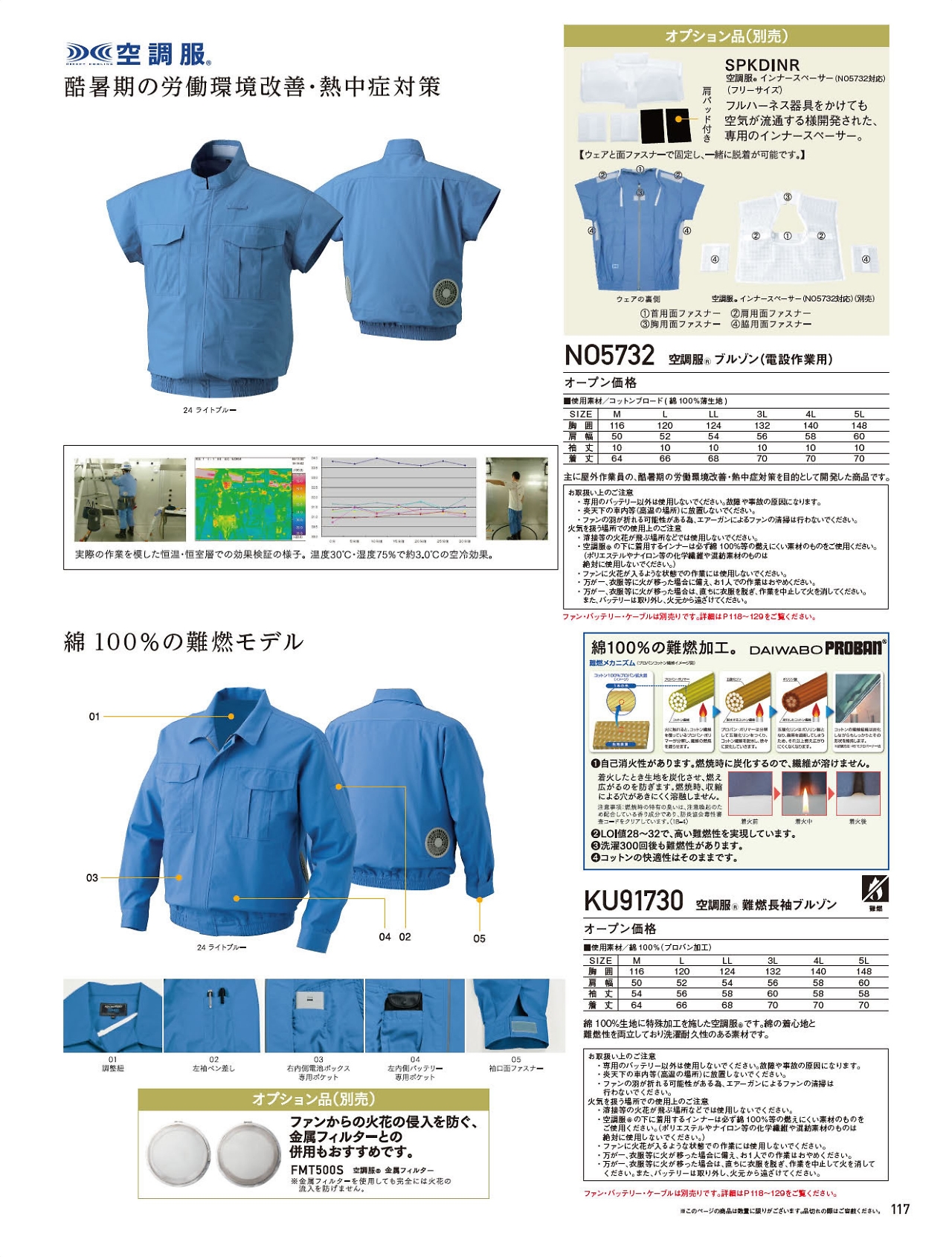 綿難燃長袖空調服 KU91730