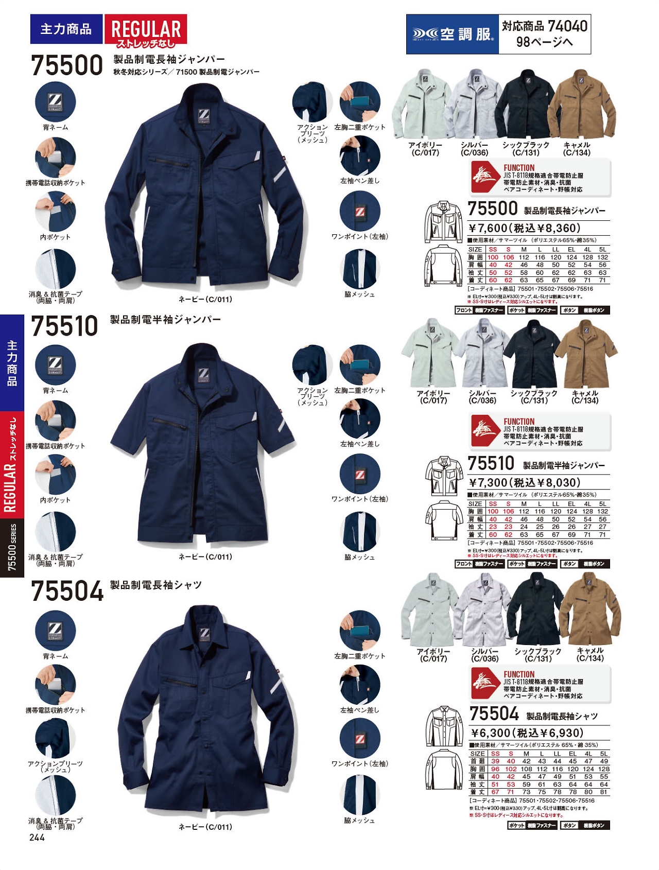 製品制電長袖ジャンパー 75500
