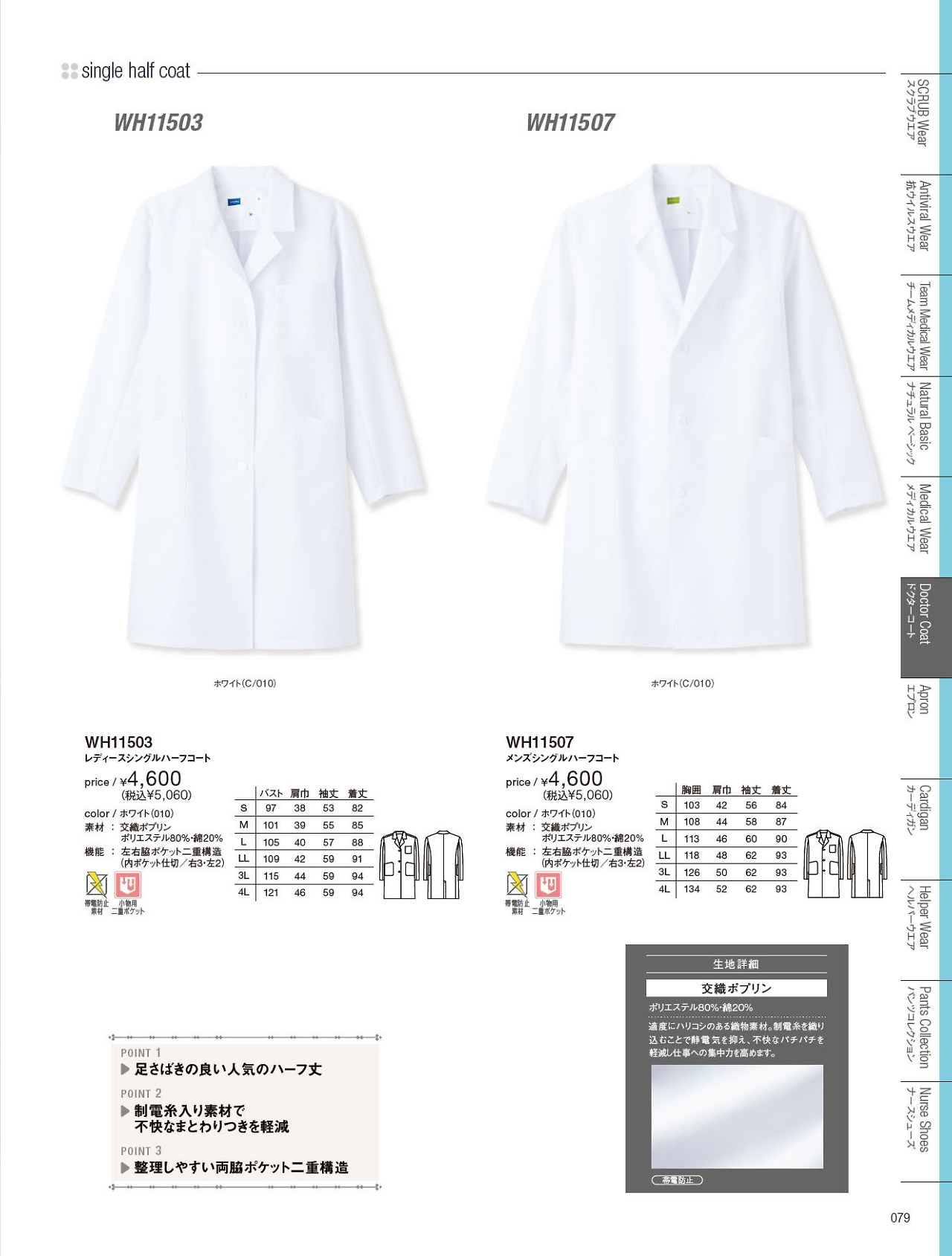 レディースシングルハーフコート WH11503