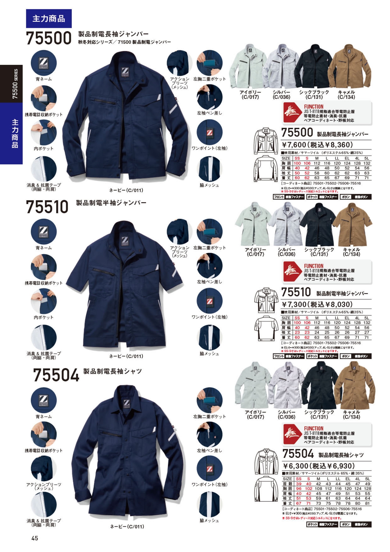 製品制電長袖ジャンパー 75500