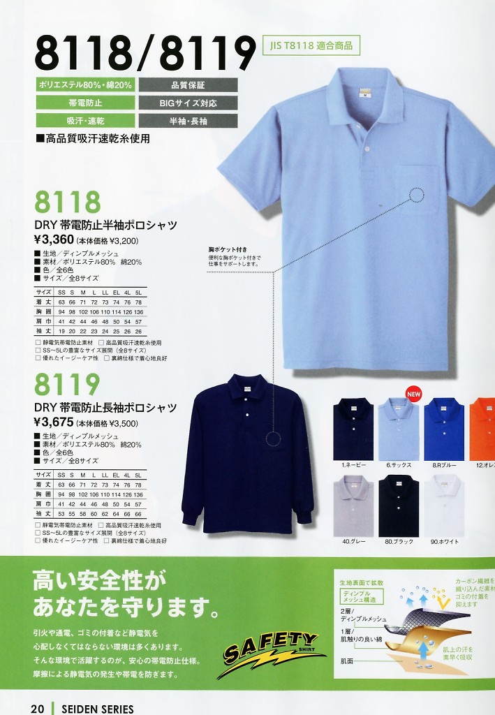 DRY帯電防止長袖ポロシャツ
