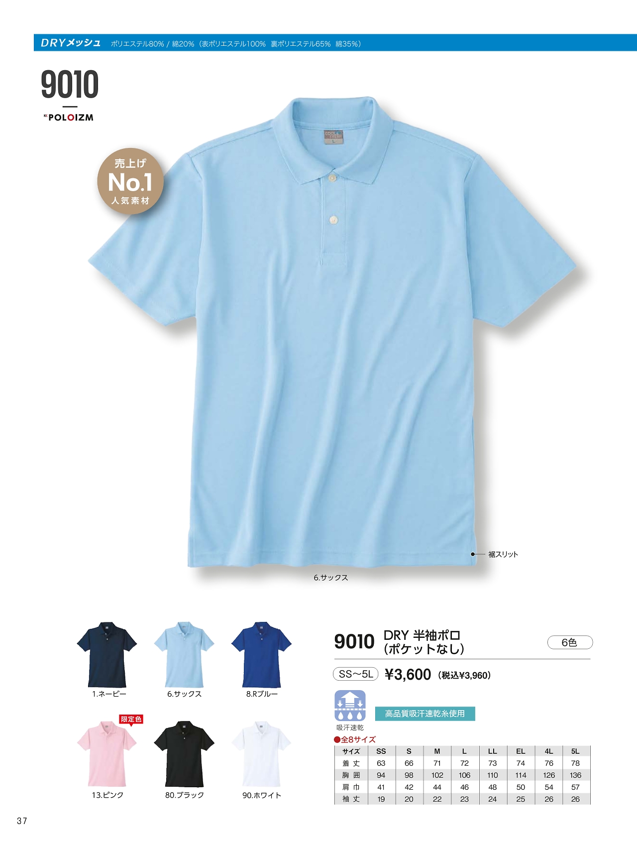 半袖ポロシャツポケなし 9010