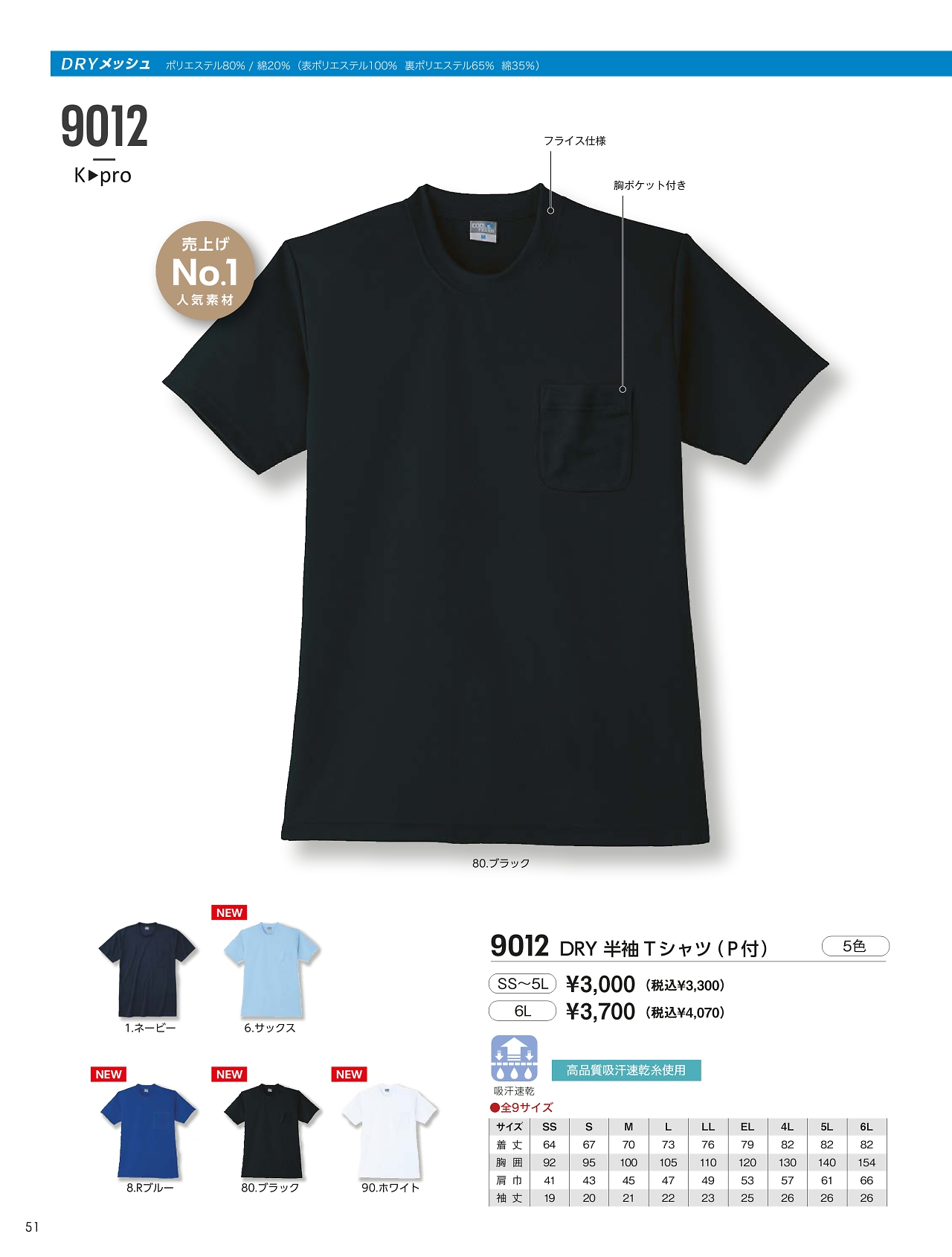 DRY半袖Tシャツポケット付 9012