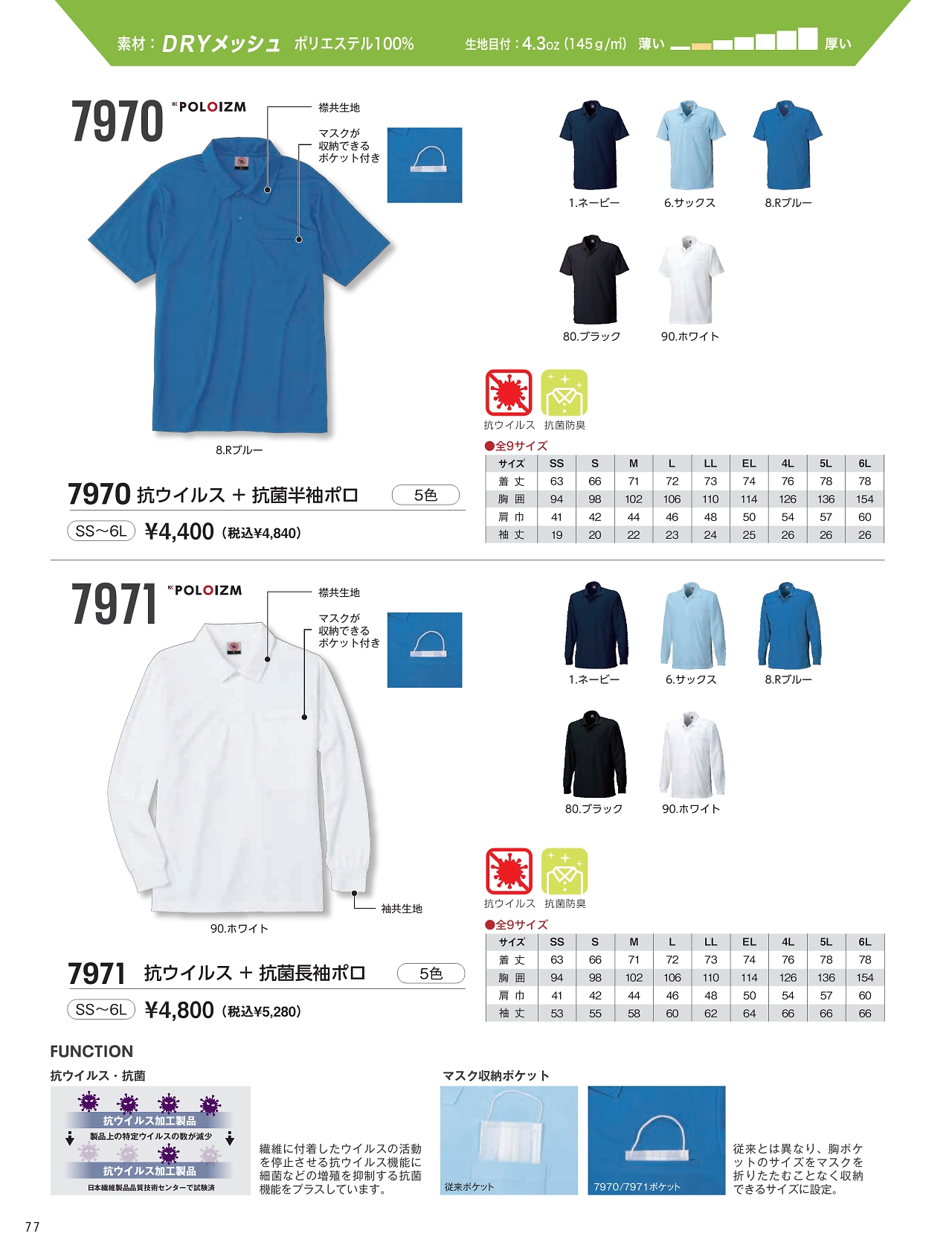 抗ウイルス+抗菌半袖ポロ 7970