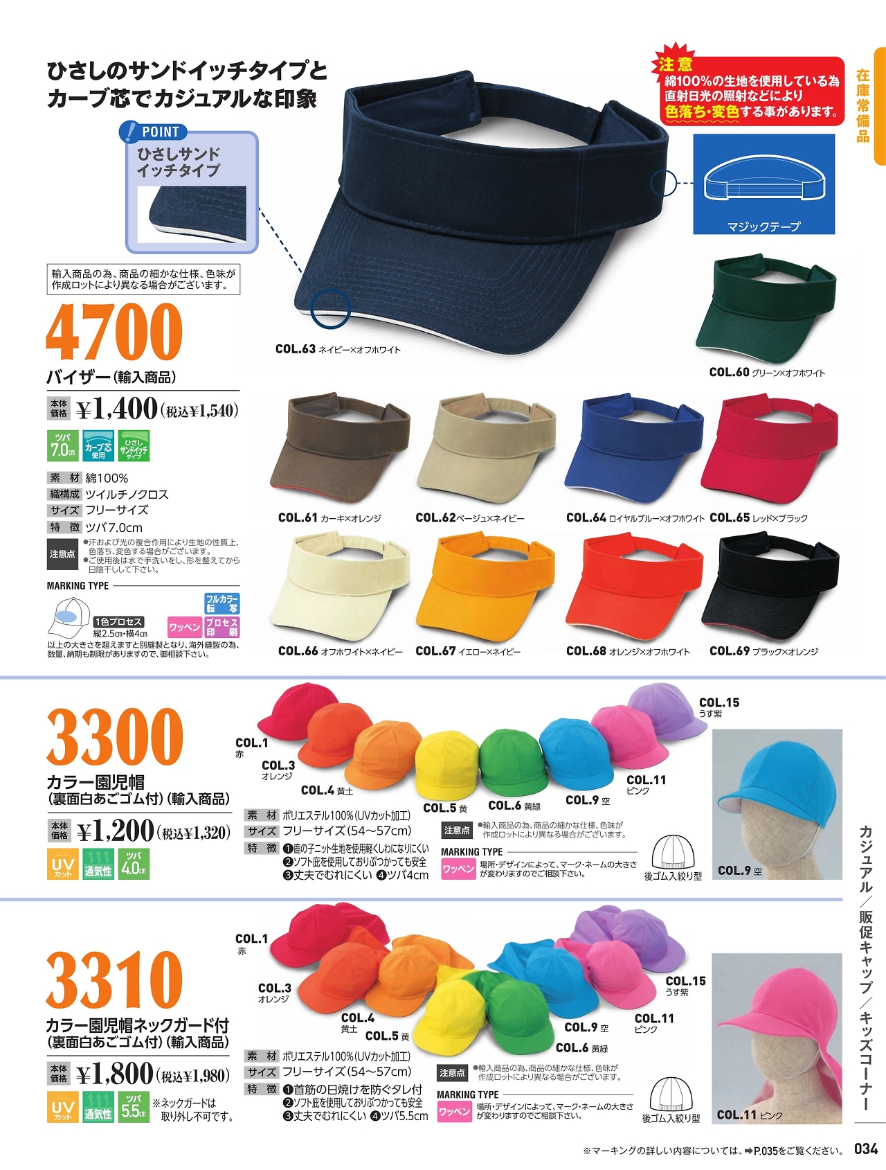 カラー園児帽 3300