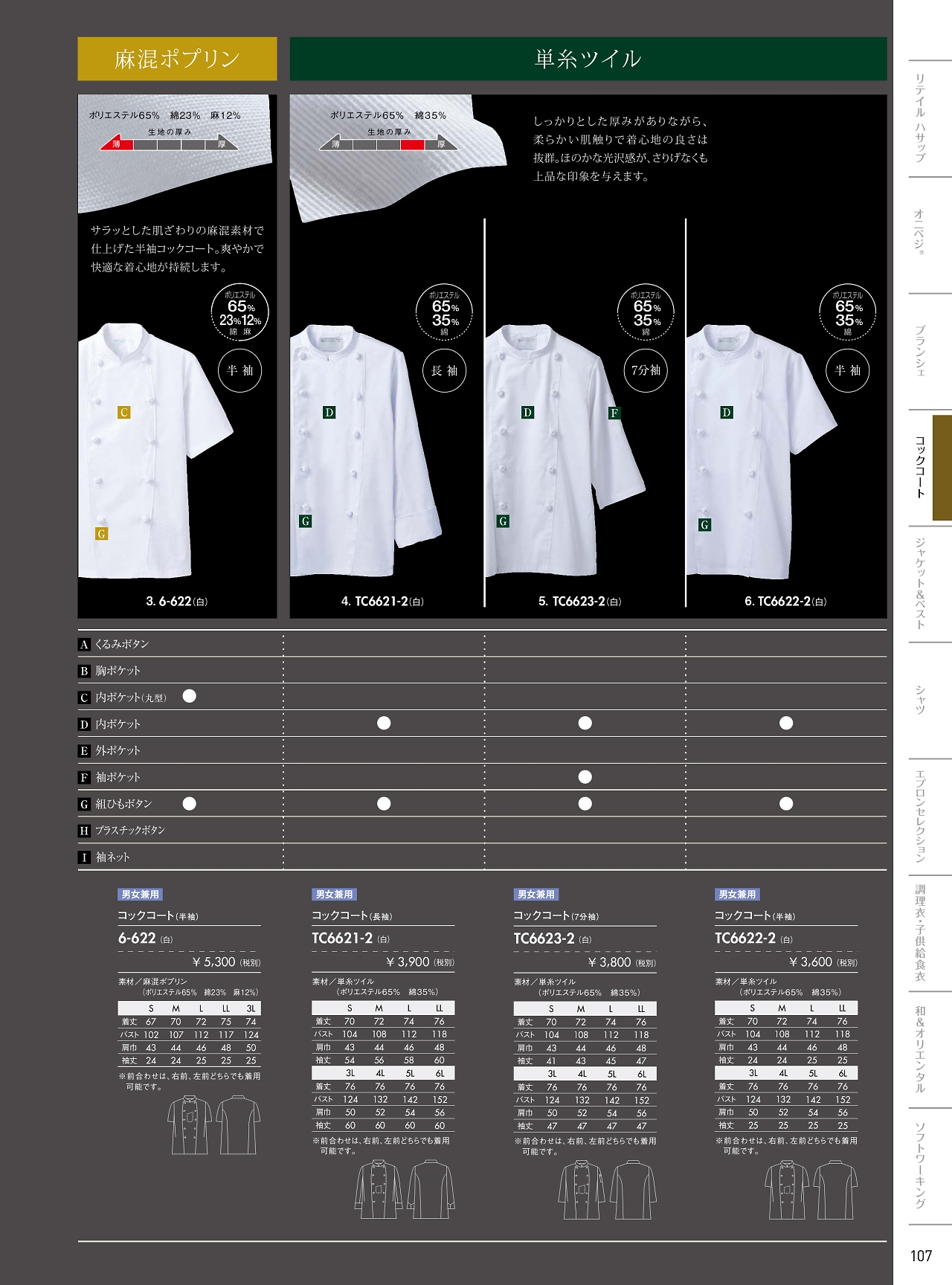 兼用半袖コックコート 6-622