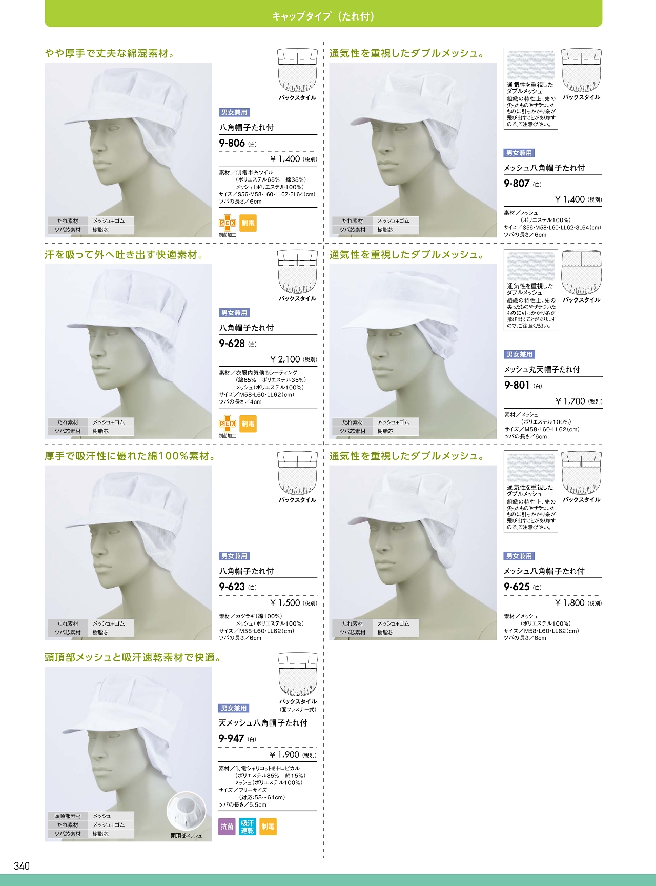 兼用メッシュ八角帽子タレ付 9-807