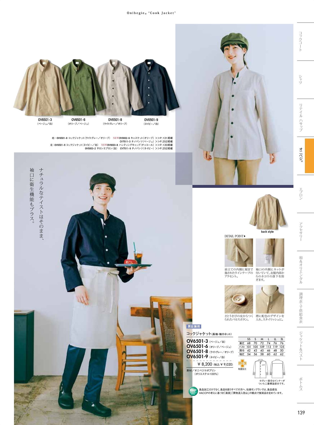 兼用長袖コックジャケット OV6501-8