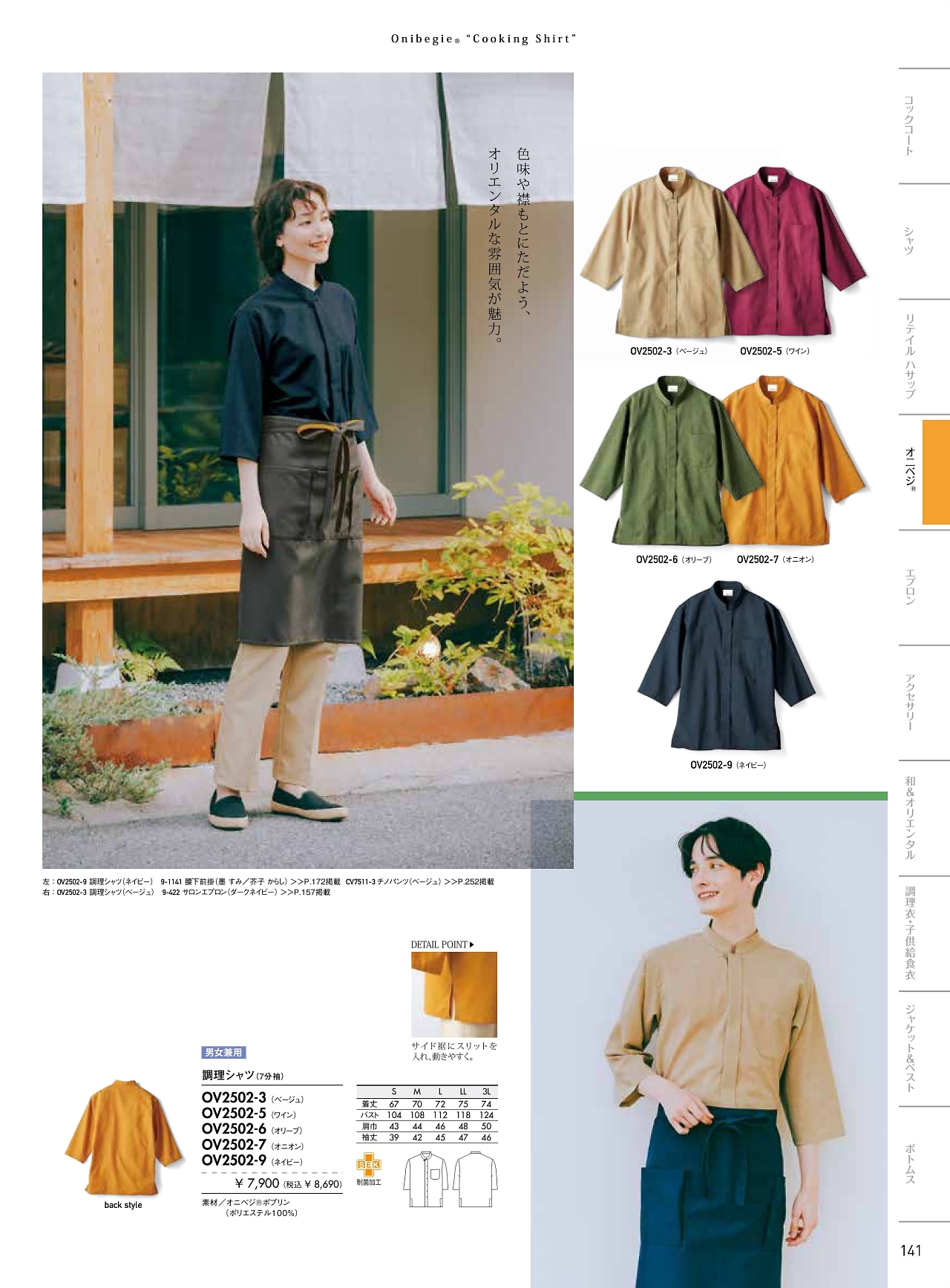 兼用7分袖調理シャツ OV2502-5