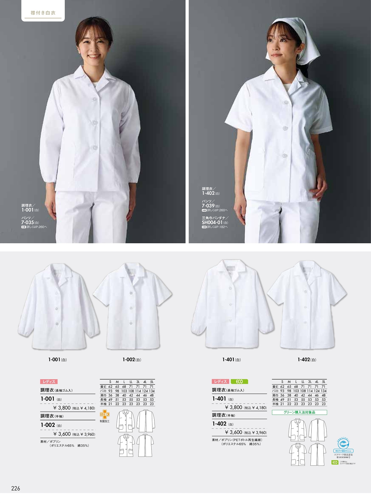 女性調理衣半袖 1-402