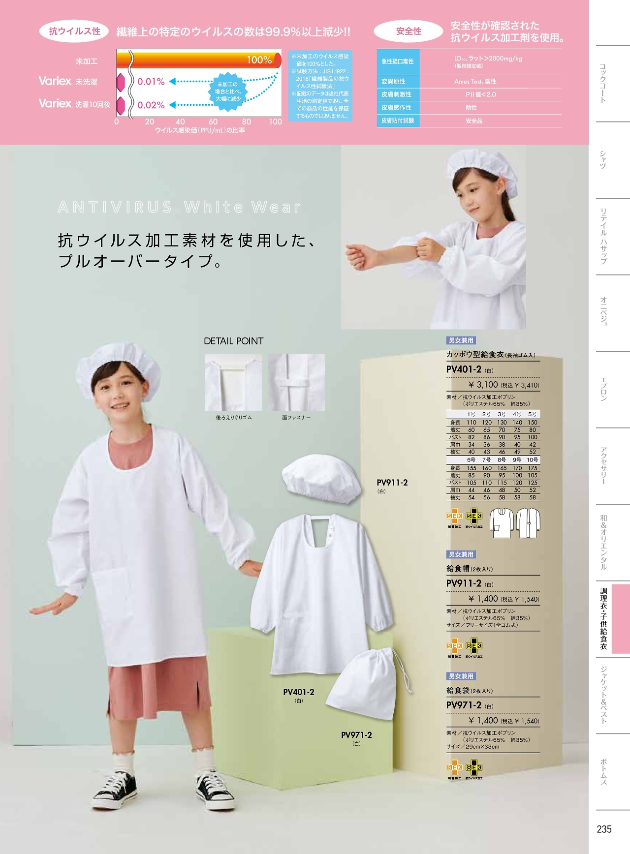 カッポウ型給食衣児童用 PV401-2