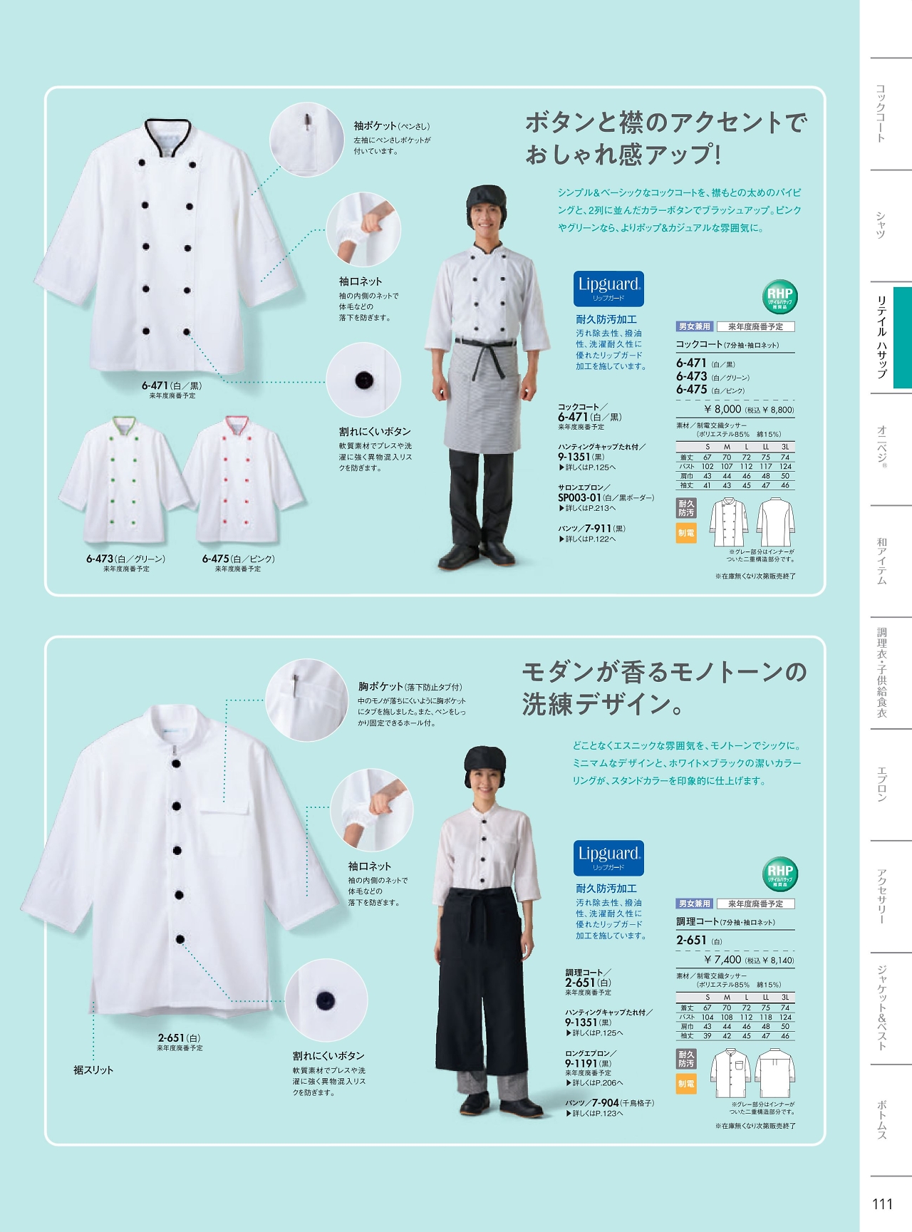 兼用7分袖調理コート 2-651