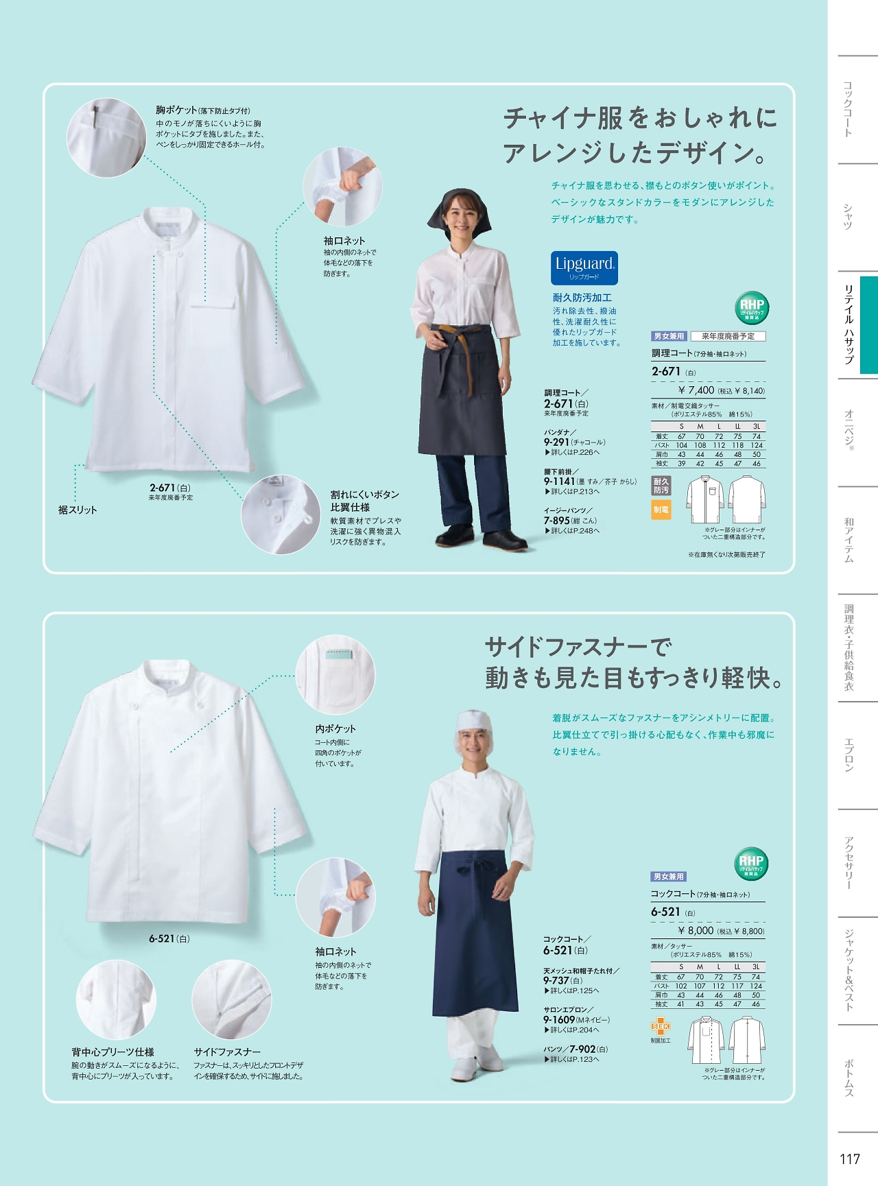 兼用7分袖調理コート 2-671