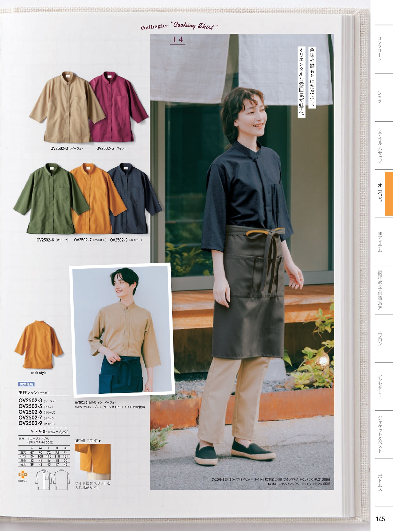 兼用7分袖調理シャツ OV2502-5