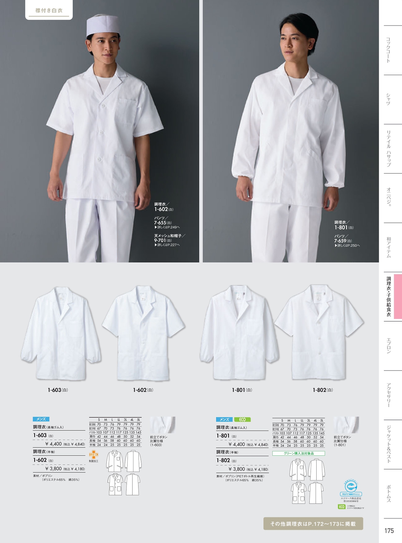 男子調理衣半袖 1-802