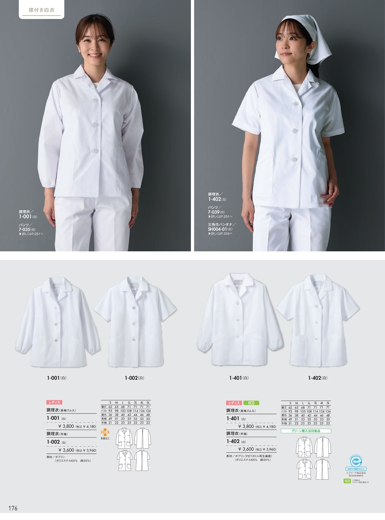 女性調理衣半袖 1-402