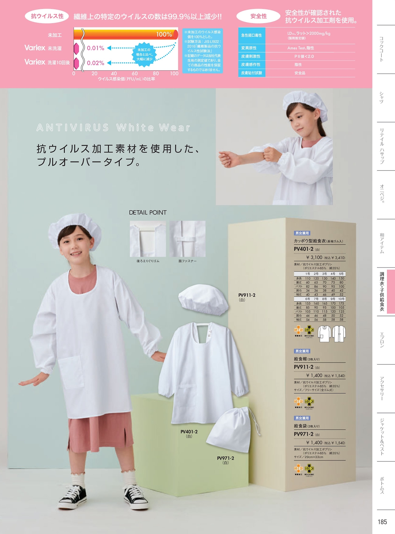 カッポウ型給食衣児童用 PV401-2