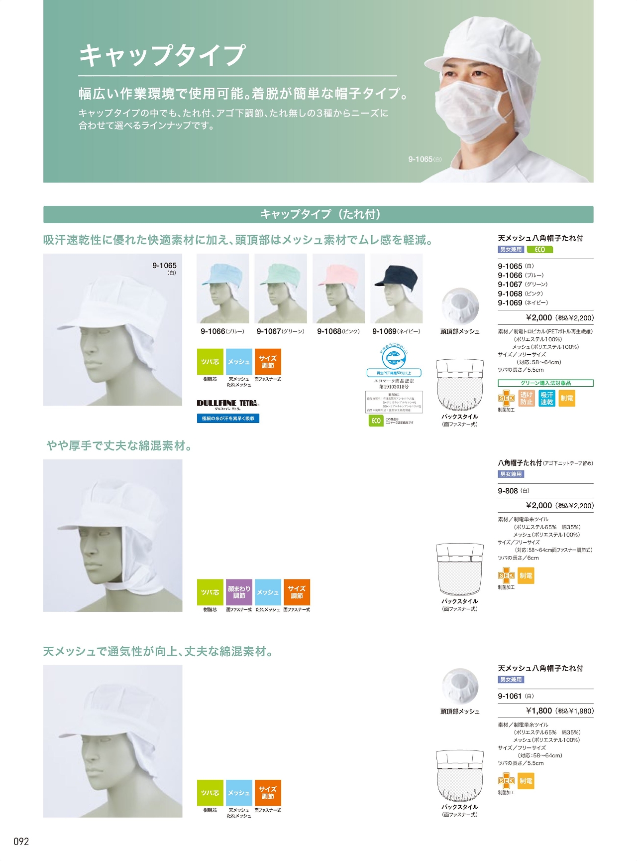 兼用八角帽子たれ付 9-808