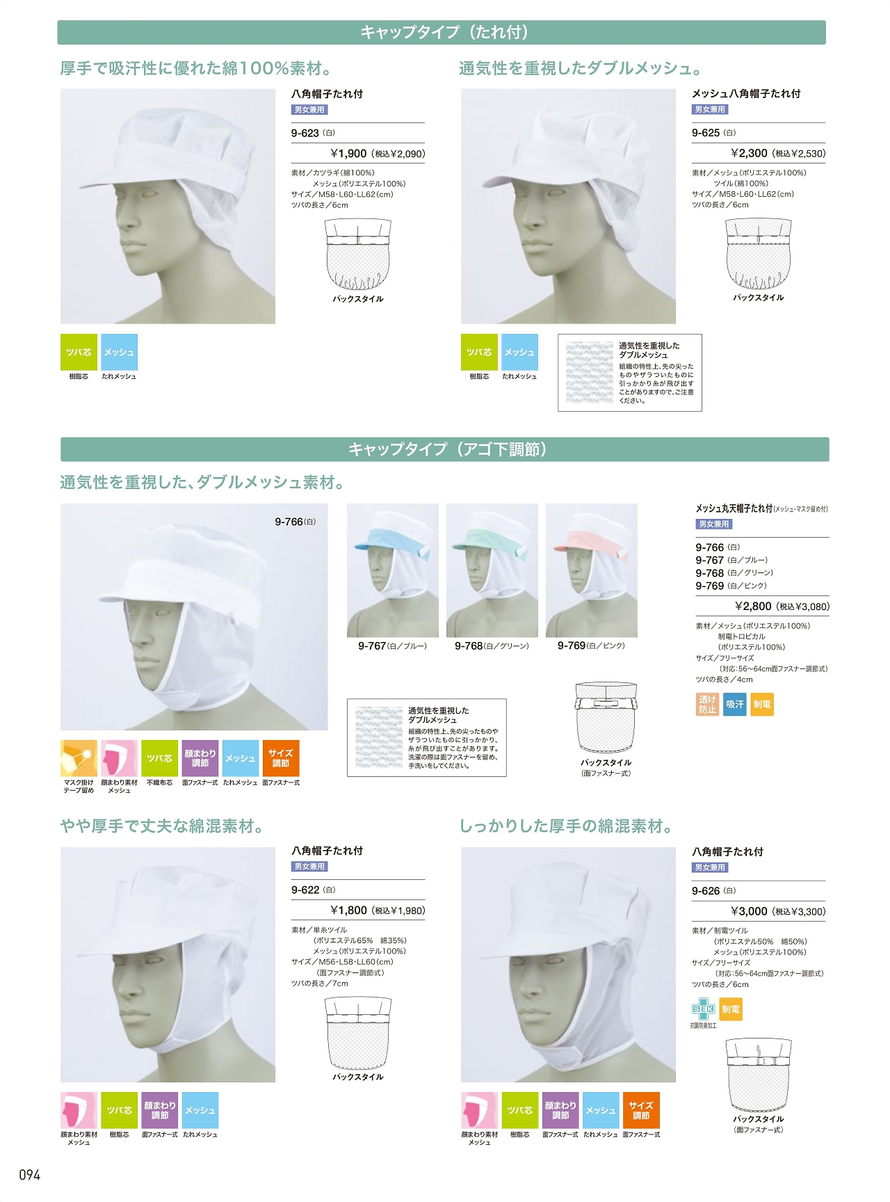 メッシュ丸天帽子たれ付 9-768