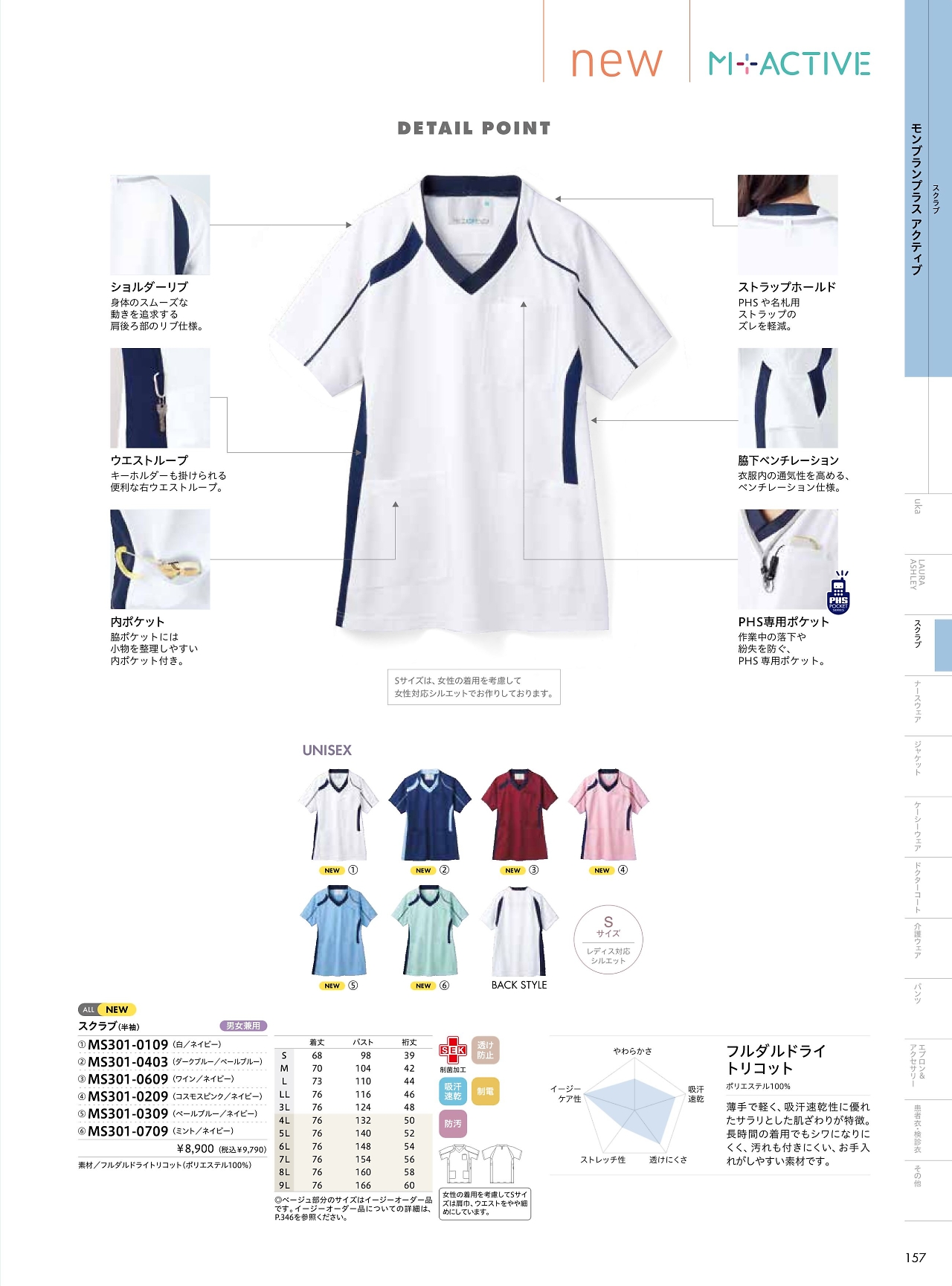 スクラブ兼用半袖 MS301-0709