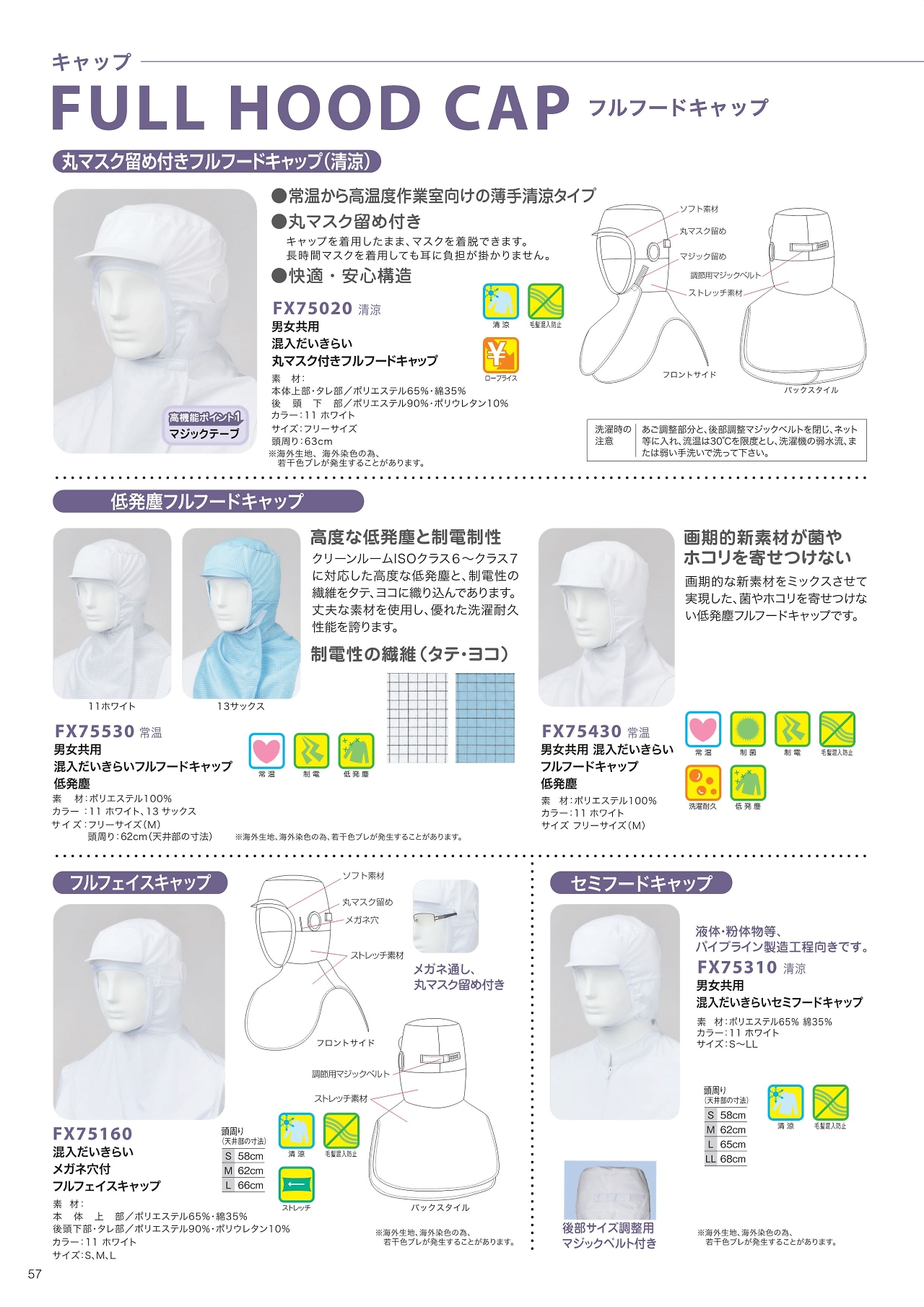 低発塵フルフードキャップ FX75530