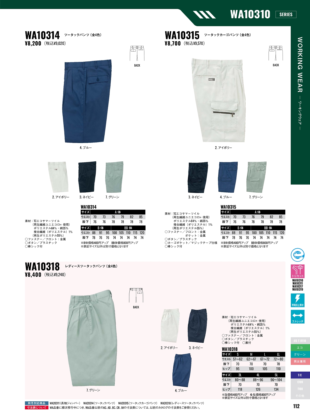ツータックパンツBC10314 WA10314