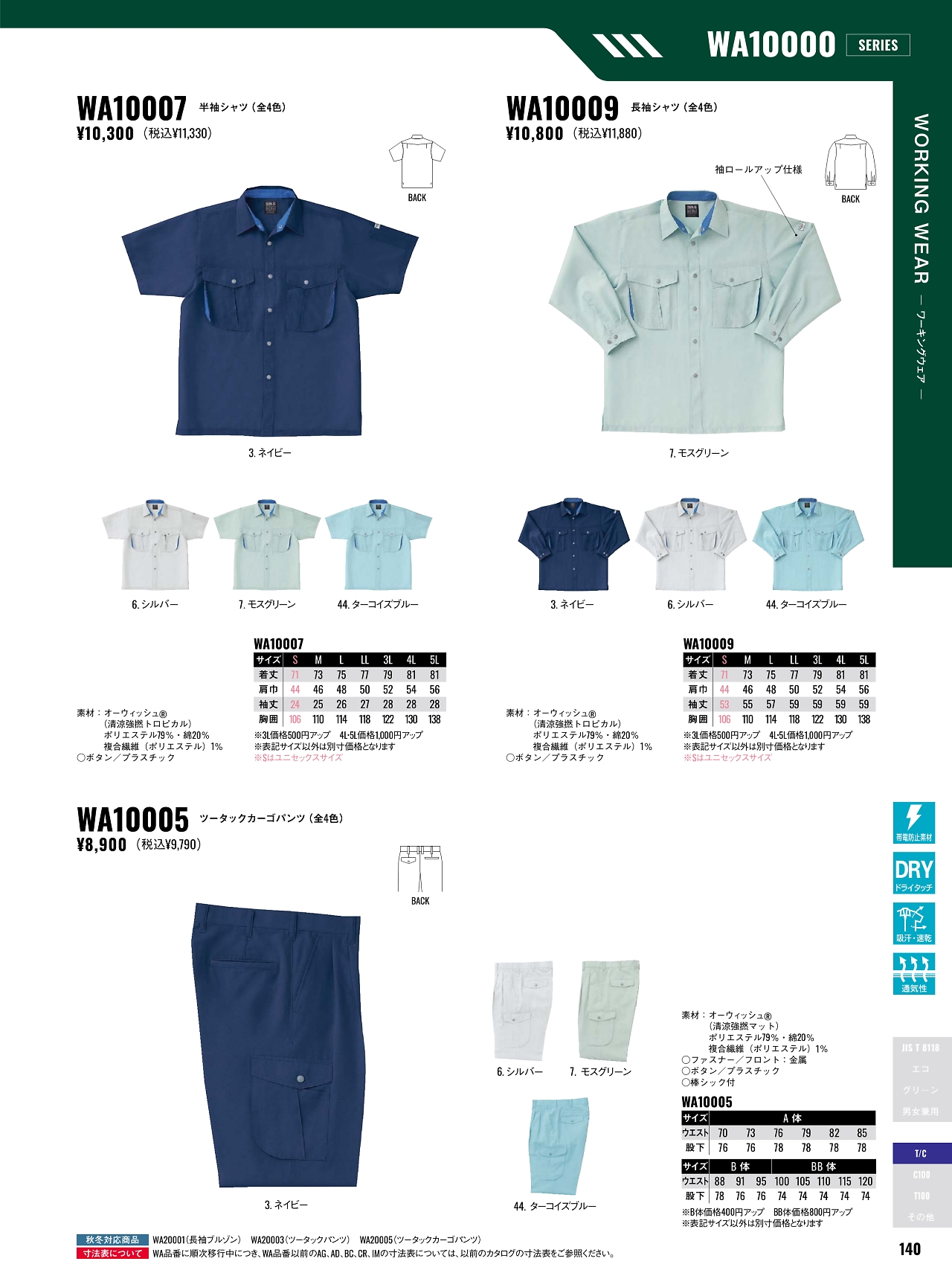 半袖シャツAG10007 WA10007