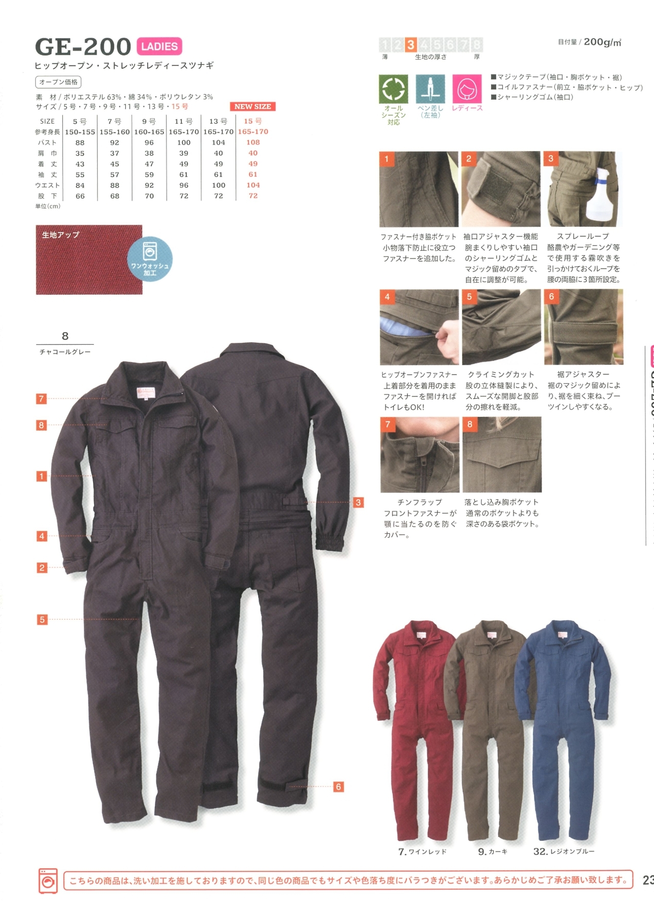 レディース長袖ツナギ GE200