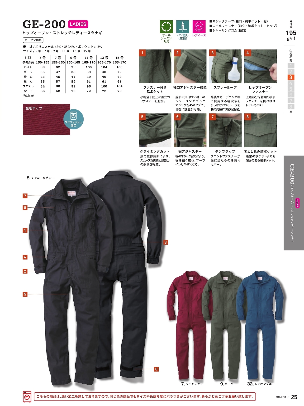 レディース長袖ツナギ GE200