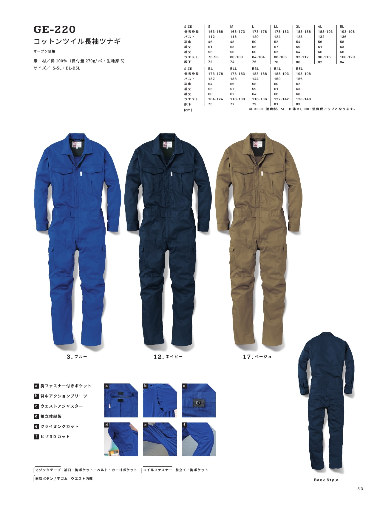 コットンツイル長袖ツナギ