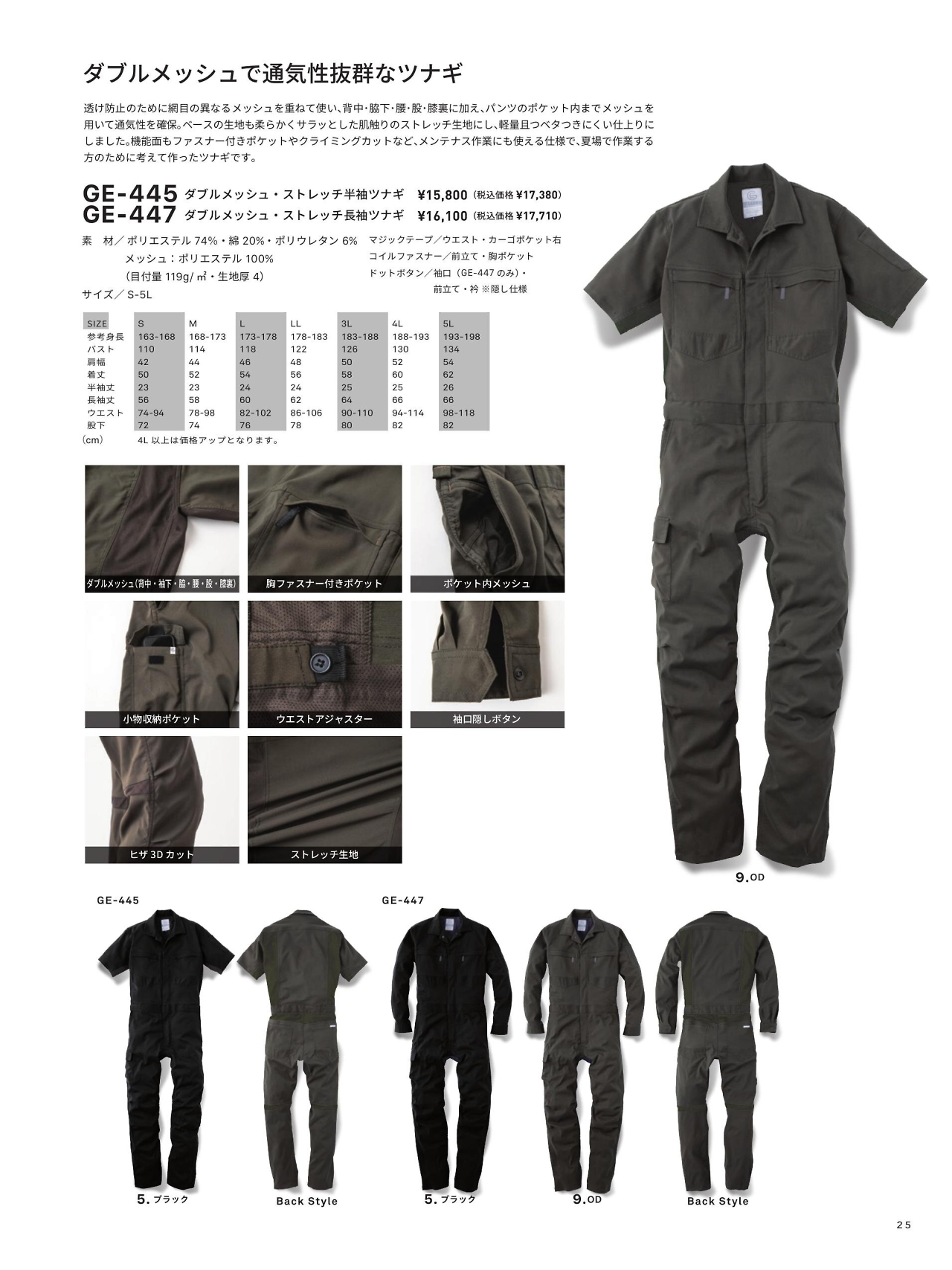 Wメッシュストレッチ長袖ツナギ