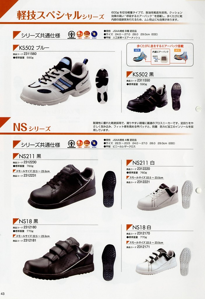 作業靴NS211白 2312220